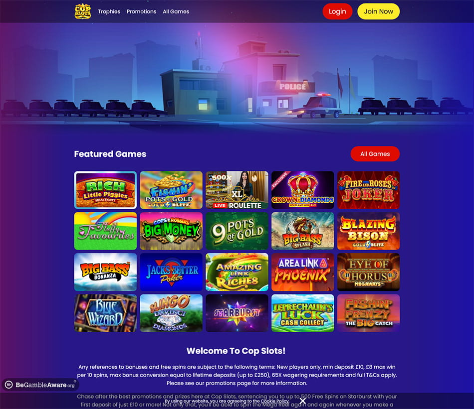 The huge variety of slots and other games at Cop Slots Casino is only one of its strongest sides. It really seems that ths operator has been designed to be a reliable and scam-free platform. Here is the full Cop Slots review – check it out, and sign up by using the link below.